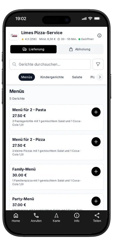 Menü für 2 - Pizza